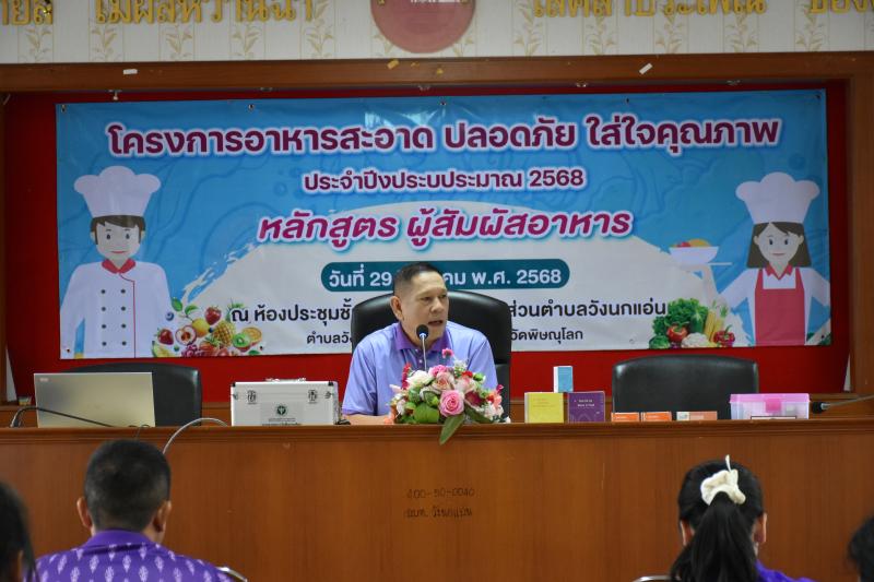 งานสาธารณสุข องค์การบริหารส่วนตำบลวังนกแอ่น จัดอบรมหลักสูตร “ผู้สัมผัสอาหาร” เพื่อยกระดับมาตรฐานความปลอดภัยด้านอาหารและสุขอนามัยสำหรับผู้ประกอบการและผู้เกี่ยวข้อง โดยได้รับเกียรติจาก วิทยากรผู้เชี่ยวชาญจากโรงพยาบาลวังทอง ให้ความรู้เกี่ยวกับการปฏิบัติที่ถูกต้องตามมาตรฐานความปลอดภัยอาหาร