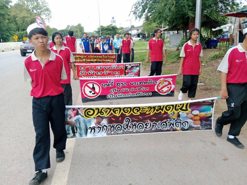 ได้ร่วมเดินขบวนรณรงค์ต่อต้านยาเสพติด เพื่อแสดงให้เห็นถึงพลังความสามัคคีของคนในชุมชน ประชาชน เยาวชน และหน่วยงานภาครัฐ รับรู้และเห็นถึงความสำคัญในการต่อต้านยาเสพติด ด้วยการร่วมมือเพื่อแก้ไขปัญหายาเสพติต