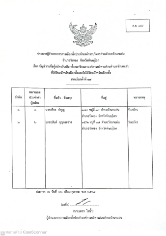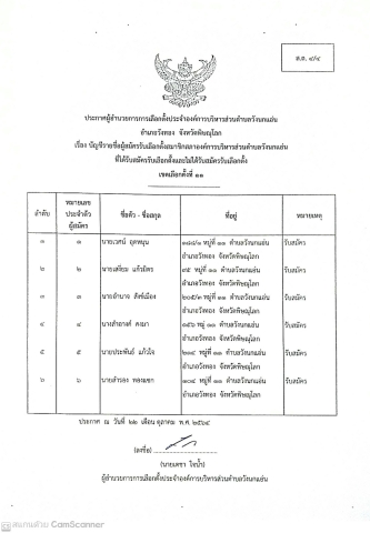ประกาศบัญชีรายชื่อผุ้สมัครสมาชิก อบต.วังนกแอ่น และนายก อบต.วังนกแอ่น