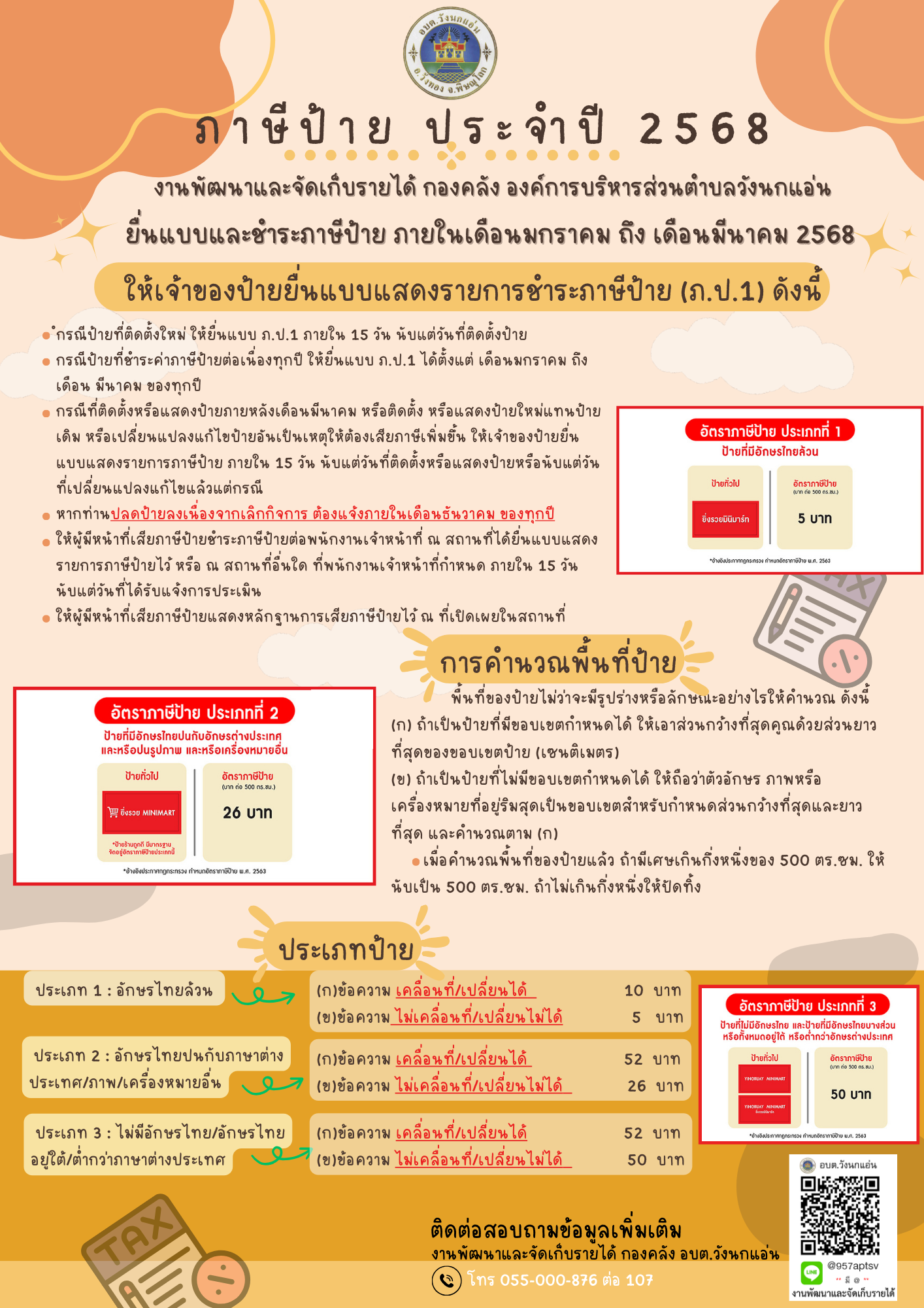 เรื่อง ภาษีป้าย ภาษีที่ดินและสิ่งปลูกสร้าง ประจำปี 2568