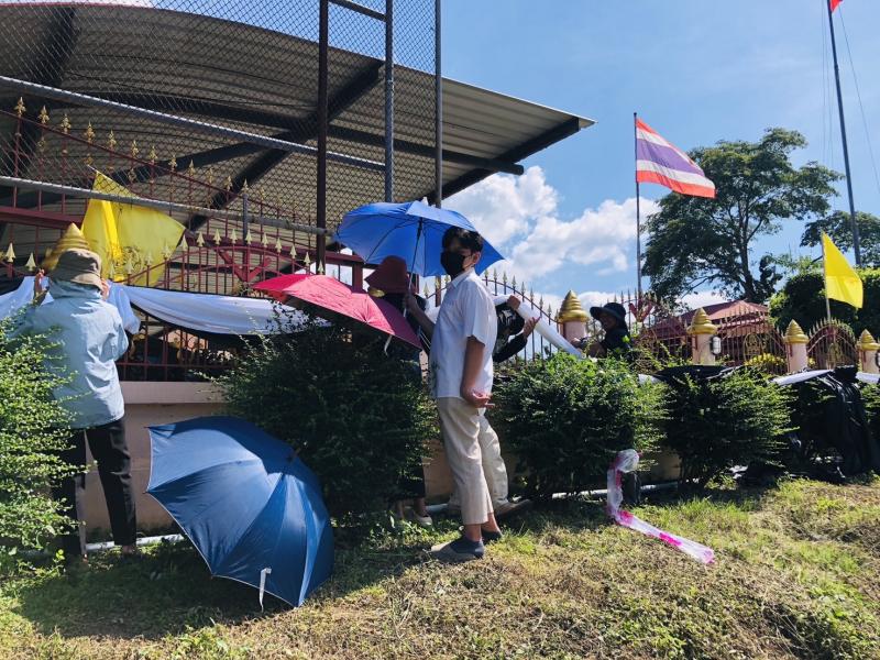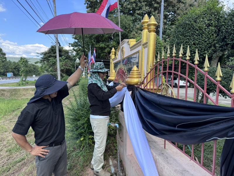 ร่วมกันผูกผ้าประดับรั้วรอบ องค์การบริหารส่วนตำบลวังนกแอ่น