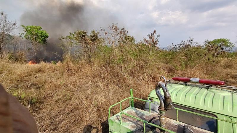รับแจ้งเหตุไฟไหม้ป่าในพื้นที่ตำบลวังนกแอ่น บริเวณทางขึ้นห้วยฟองหนองดู่ เขตติดต่อพื้นที่ป่าชุมชนหมู่ที่ 19 บ้านวังกระบาก