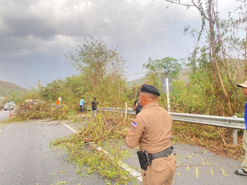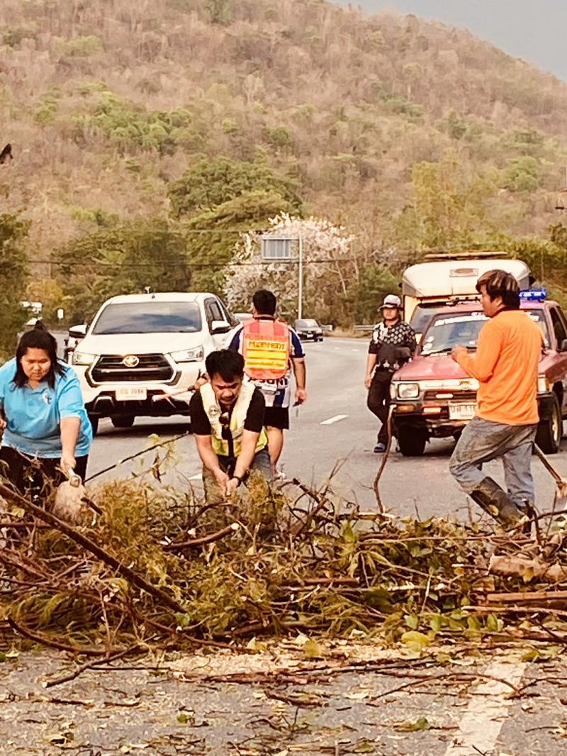 อบต.วังนกแอ่น ลงพื้นที่ตัดต้นไม้ล้มกีดขวางการจราจร