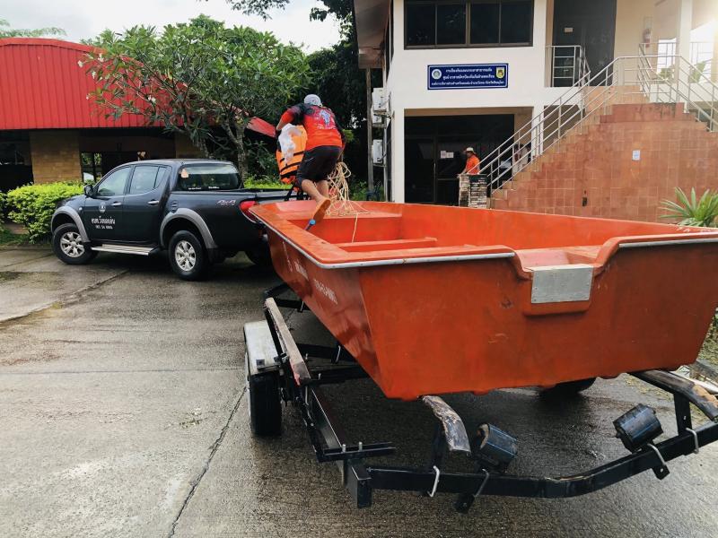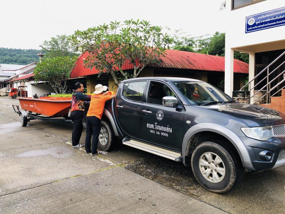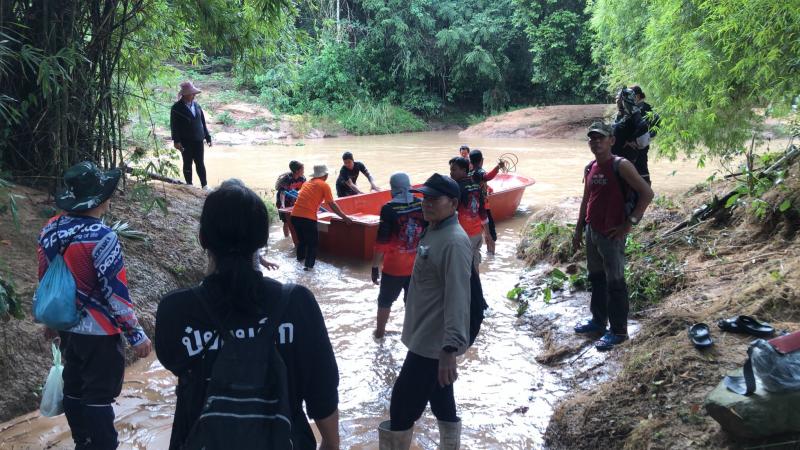 อบต.วังนกแอ่น เข้าช่วยเหลือเจ้าหน้าที่พลังงานติดค้างข้ามลำน้ำไม่ได้