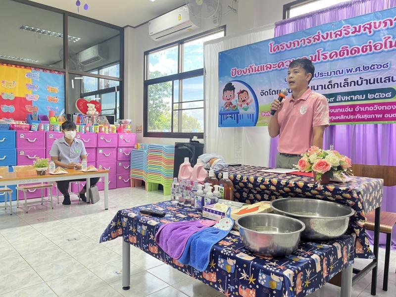 description วันอังคารที่ 19 สิงหาคม 2568 ศูนย์พัฒนาเด็กเล็กบ้านแสนสุขพัฒนา จัดโครงการส่งเสริมสุขภาพป้องกันและควบคุมโรคติดต่อในเด็กปฐมวัย ภายใต้การดูแลของ #องค์การบริหารส่วนตำบลวังนกแอ่น อำเภอวังทอง จังหวัดพิษณุโลก ได้รับการสนับสนุนงบประมาณจาก กองทุนหลักประกันสุขภาพ อบต.วังนกแอ่น วิทยากรให้ความรู้ในครั้งนี้ ได้แก่ นายภานุพงศ์ อ่อนดี ตำแหน่ง พยาบาลวิชาชีพปฏิบัติการ จาก รพ.สต.บ้านแสนสุขพัฒนา เพื่อสร้างเสริมสุขภาพและป้องกันโรคในเด็กปฐมวัย ให้มีสุขภาพแข็งแรง พร้อมเติบโตอย่างมีคุณภาพ person admin
